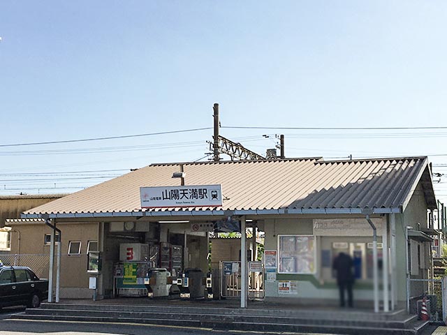 山陽電鉄網干線『山陽天満』駅は兵庫県姫路市大津区天神町にある山陽電鉄の駅です。1941年(昭和16年)に網干線の終端駅として開業しました。その後、1972年に駅舎が改築されました。駅の構造は相対式ホーム2面2線の地上駅です。網干線が単線のため、下り線が『山陽天満』駅で待ち合わせをします。駅舎は飾磨行きホームよりにあり網干行きのホームへは構内の踏切で連絡しています。駅前にはタクシー乗り場が設けられています。駅の隣には汐入川が流れています。駅の北側は近年宅地化が進んでいます。駅の南側国道250線沿いには工場や商店が建ち並んでいます。駅から1kmほどの位置に兵庫県立姫路南高等学校があり、通学のために駅を利用する学生も多くいます。