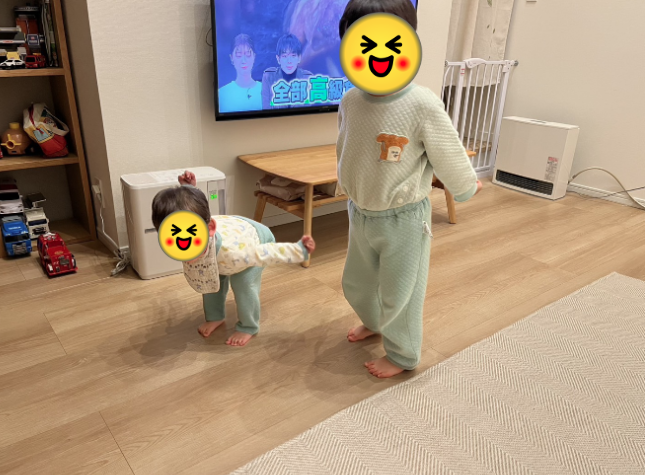 鬼ごっこやかくれんぼなど、家でも兄弟で一緒に遊んでくれています。お風呂上りにキッチンのまわりをグルグル何周も追いかけっこするのが日課です。