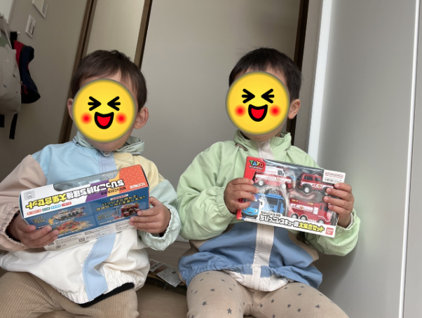 子供が車のおもちゃが好きなのでよく家で一緒に遊んでいます。写真は大好きなタヨのおもちゃをおばあちゃんに買ってくれて喜んでかえって来た時のものです。
