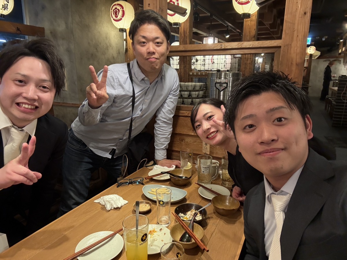 先輩・後輩と食事に行く時間を大切にしています。仕事の話はもちろん、何気ない会話の中から学びや気づきを得られる貴重な時間です。チームワークを大切にし、互いに高め合える関係づくりを意識しています。