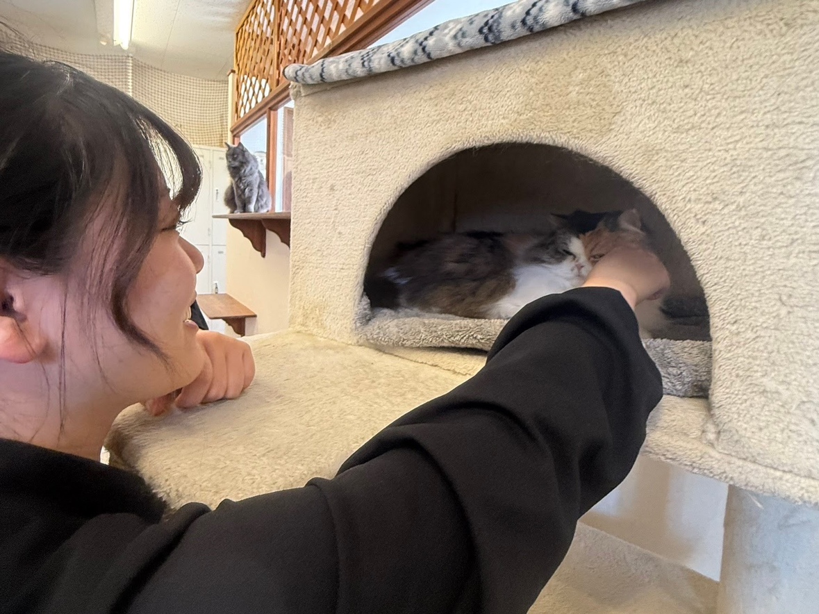 猫カフェに行った時の写真です。わんちゃん、猫ちゃんが大好きなので、お休みの日に会いに行くことが多いです。